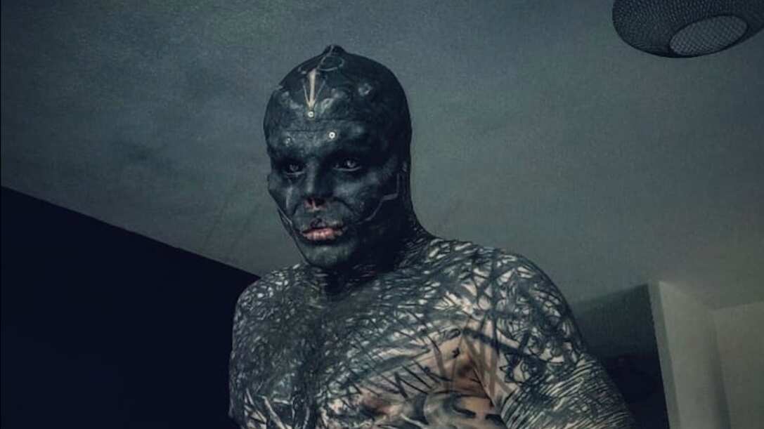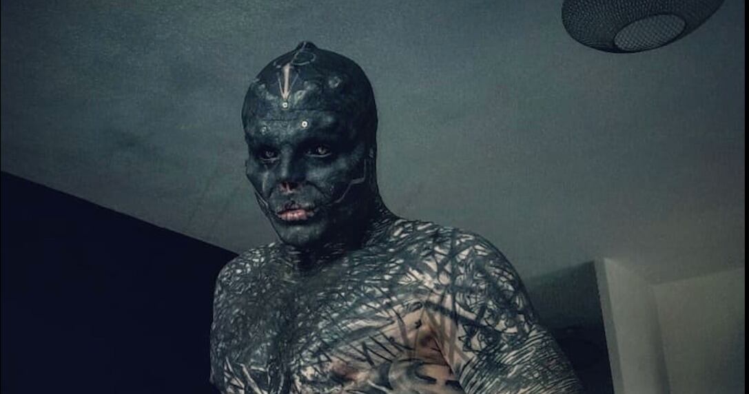 El francés Anthony Loffredo, de 32 años, tiene una apariencia física aterradora. Tiene tatuajes en todo su cuerpo, y se ha realizado modificaciones en su fisionomía y cabeza. Su objetivo: parecerse a un alienígena negro.