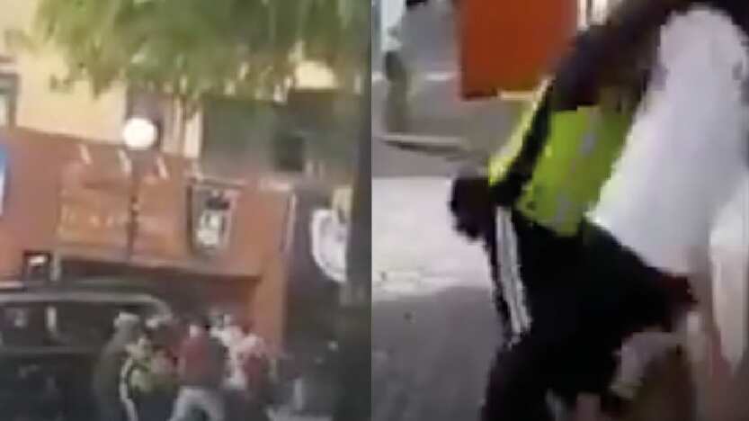 Además, la motocicleta con la que el funcionario operaba es enviada al suelo. Una de las personas que graba dice «¡Están todos borrachos!».