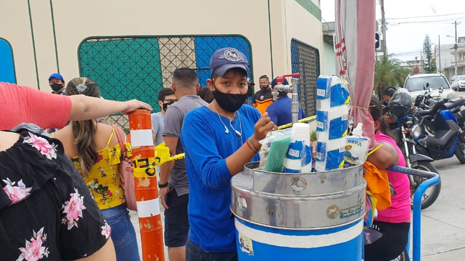 «Desde 0,50 centavos el vaso», decía el vendedor. Cuando le preguntamos por qué decidió salir pese a la orden de que el comercio informal está prohibido durante las elecciones, dijo que lo hizo por necesidad.