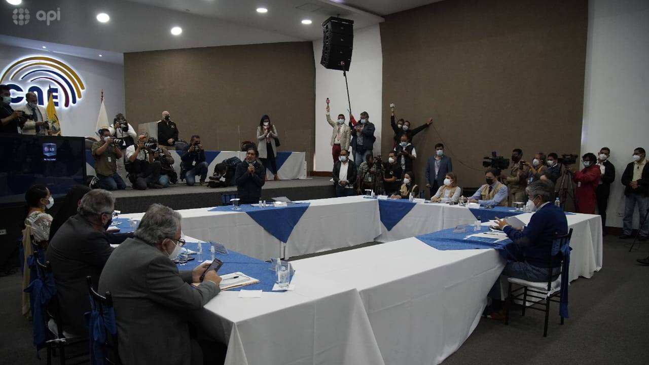 El Consejo Nacional Electoral, CNE, informó sobre el acuerdo al que se llegó la tarde de este 12 de febrero, tras la conversación sostenida con los candidatos Guillermo Lasso y Yaku Pérez.