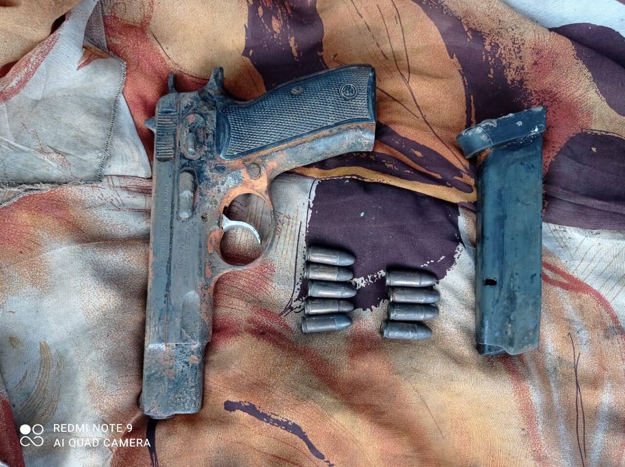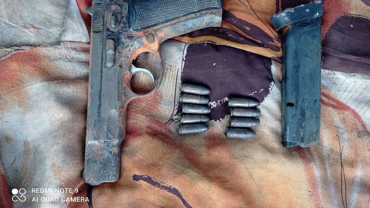 Tres horas de búsqueda subacuática fueron necesarias para encontrar el arma de fuego. El arma, tipo pistola, fue encontrada con su cargador y cartuchos.