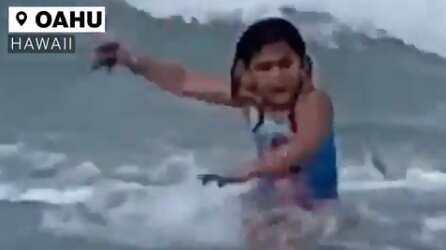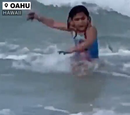 En el video se observa cuando, Anela Rezentes, la pequeña que se encontraba disfrutando de las aguas del mar en la playa Kamala en la isla de Oahu, en Hawái, quiso salir corriendo cuando vió al animal.