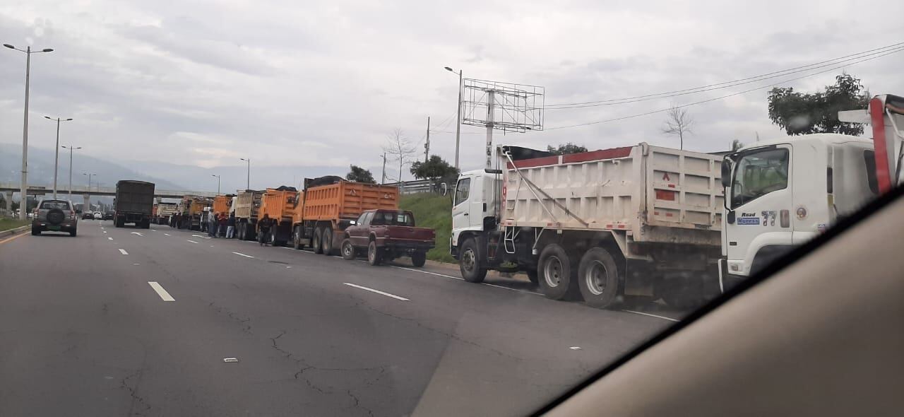 Existe una caravana de transporte pesado en cinco puntos de la ciudad de Quito. En horas de la mañana se concentraron desde el puente de Guajaló, sur de la capital y también desde el puente de El Chiche, en Tumbaco.