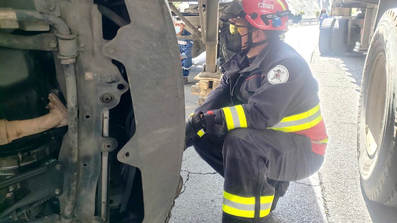 Información proporcionada por los Bomberos de Quito se liberó el vehículo atrapado por lo que se dejó el lugar en condiciones seguras.