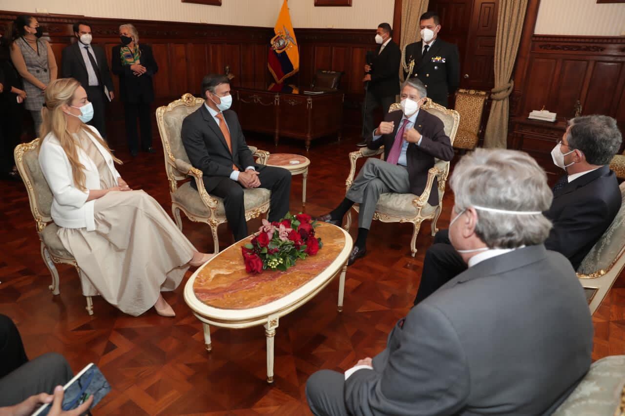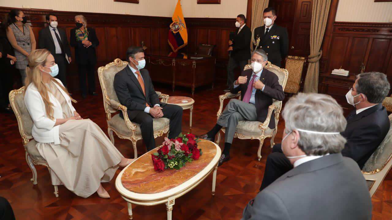 El político venezolano, Leopoldo López, aún permanece en el país y hoy mantuvo una primera reunión con el nuevo Presidente de Ecuador, Guillermo Lasso, quien lo recibió en el Palacio de Carondelet, en Quito.