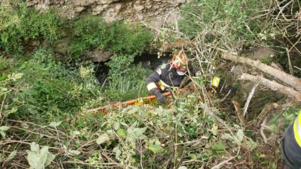 Con equipos especializados y un contingente bomberil fue rescatada una persona que cayó cerca de 15 metros al interior de una quebrada ubicada en San José del Quinche. El hecho ocurrió la tarde de este viernes y la institución compartió imágenes del momento de las labores.