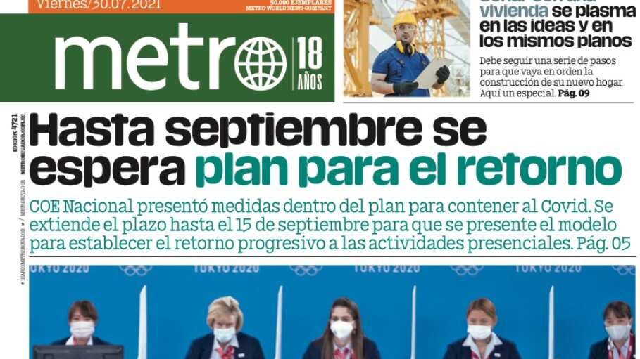 Buen viernes amigos, les presentamos la edición edición digital de Metro Ecuador para este 30 de julio. Entre los principales temas tenemos: