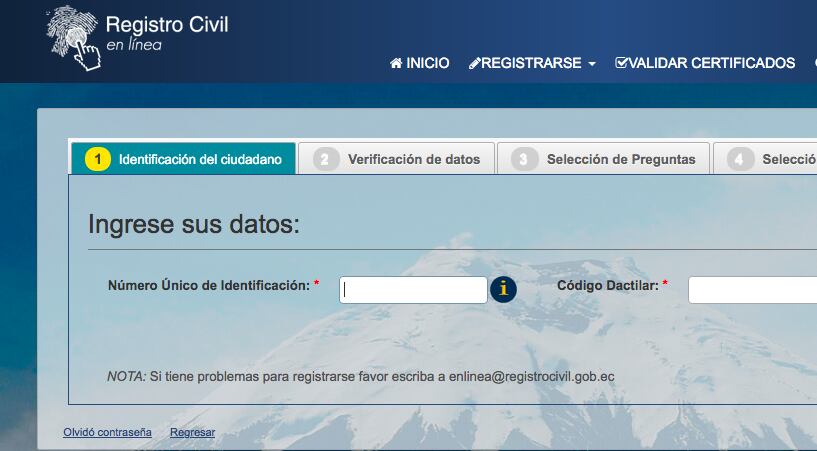 1. Ingrese a la Agencia Virtual en www.registrocivil.gob.ec