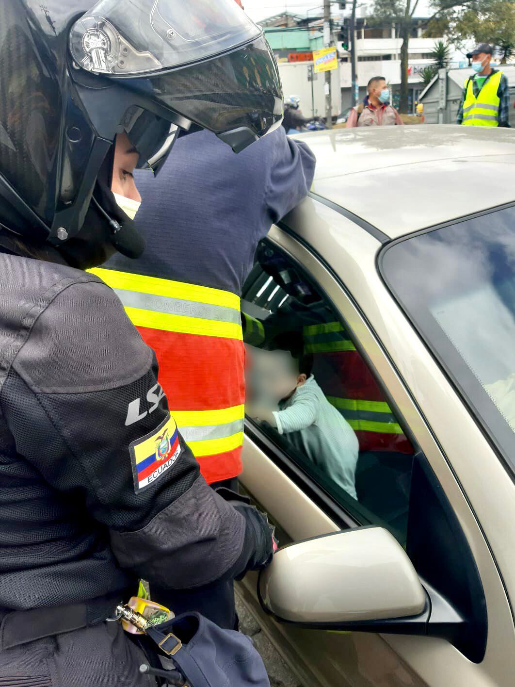 Los Bomberos de Quito informaron sobre el rescate de un menor de ocho meses que, por un descuido, se quedó atrapado en el interior de un auto en el norte de la capital. El hecho se reportó aproximadamente a las 10:10 de esta mañana en la avenida Alonso de Angulo y Jipijapa, sector La Atahualpa.