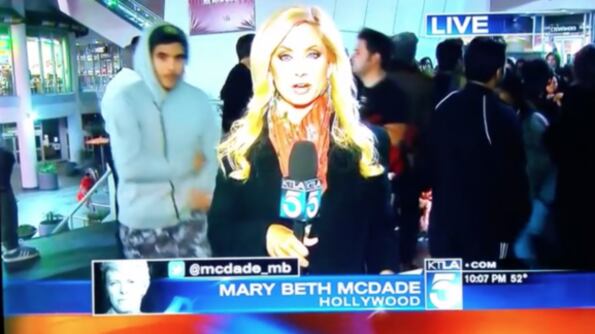 La periodista Mary Beth McDade, quien trabaja para la cadena de televisión KTLA, fue agredida sexualmente por un sujeto mientras realizaba un enlace en vivo sobre las reacciones de los fanáticos por la muerte del músico británico David Bowie desde el Paseo de la Fama de Hollywood.
