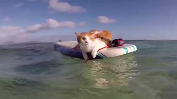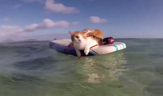 Los felinos tienen fama de no ser muy amigos del agua, sin embargo Kuli, sorprendió a todos con sus dotes de deportista y sus habilidades para surfear como los profesionales.