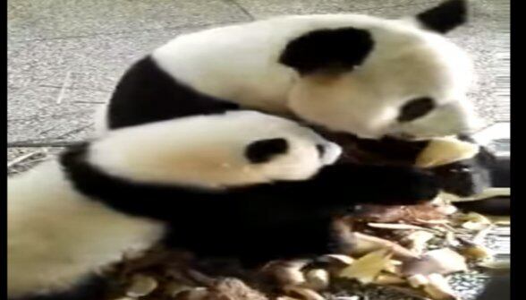 En el video se puede ver cómo un pequeño panda se la juega por lograr obtener un pedazo de bambú de otro eso panda. Luego de varios intentos y lo que muestra el video el pequeño no logra su cometido.