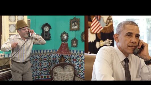 El actor Luis Silva, quien interpreta a Pánfilo en el programa de la Televisión Cubana, «Vivir del cuento» conversa con el Presidente Barack Obama en vísperas de la visita del mandatario estadounidense en la Isla. El video fue producido en la TV cubana y la Casa Blanca. El Presidente Obama ha tomado parte en algunos show de humor político en su país. Video: YouTube Canal de cubadebatecu.
