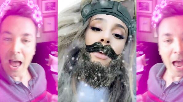 Interpretando el tema Into you, la cantante Ariana Grande y el presentador Jimmy Fallon utilizaron varios filtros de la aplicación para hacer una nueva versión del tema, haciendo lipsync.