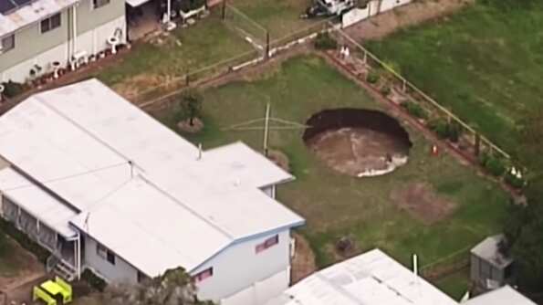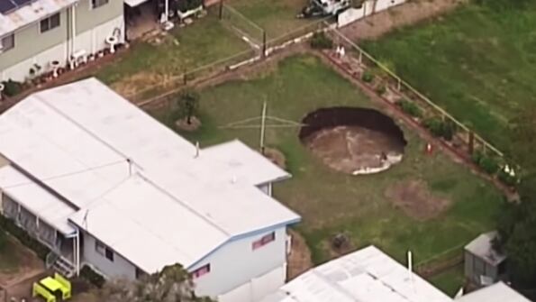 Un gran pozo apareció en una casa en Australia. En el video se puede ver cómo la tierra cae en este socavón.