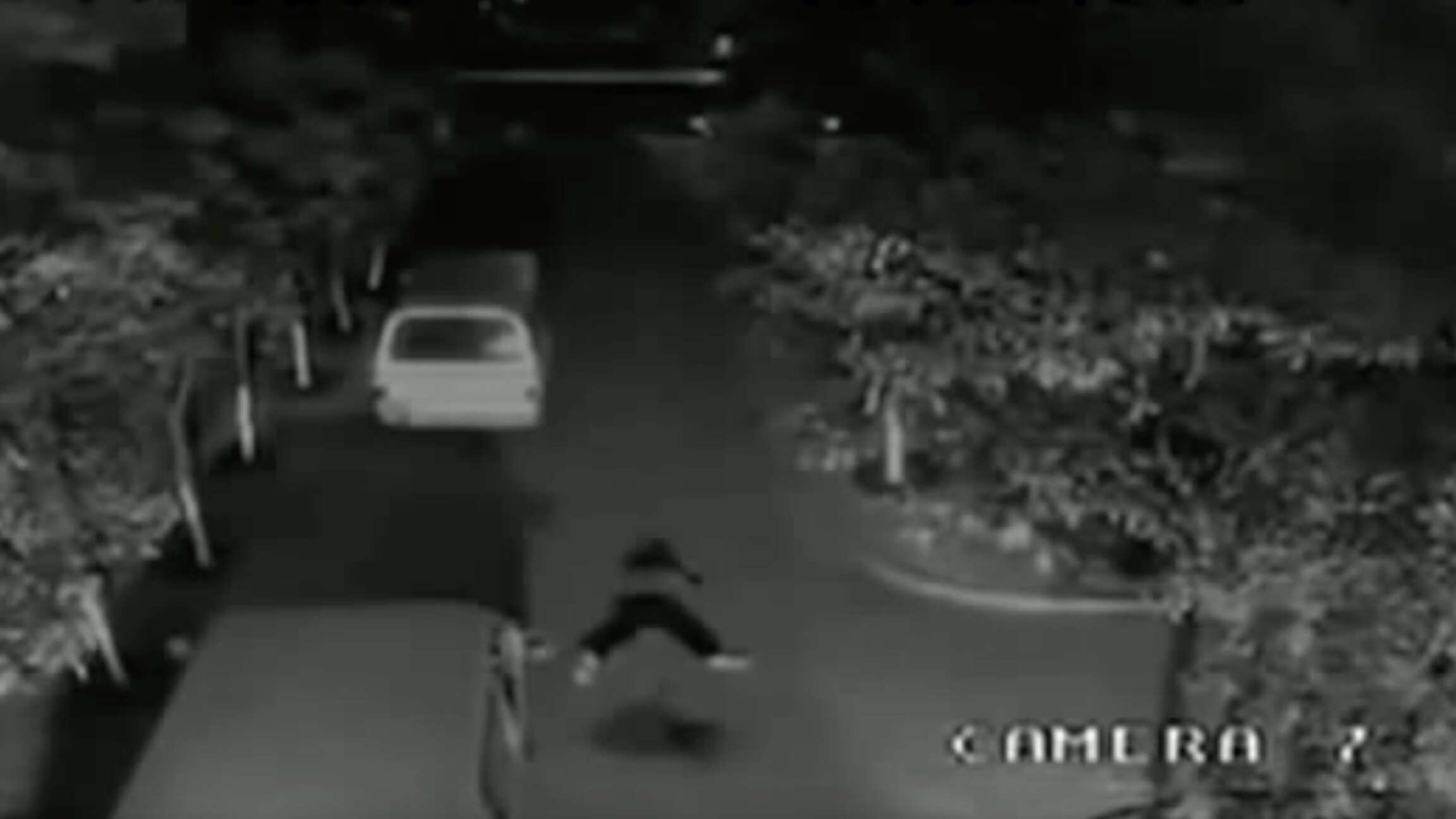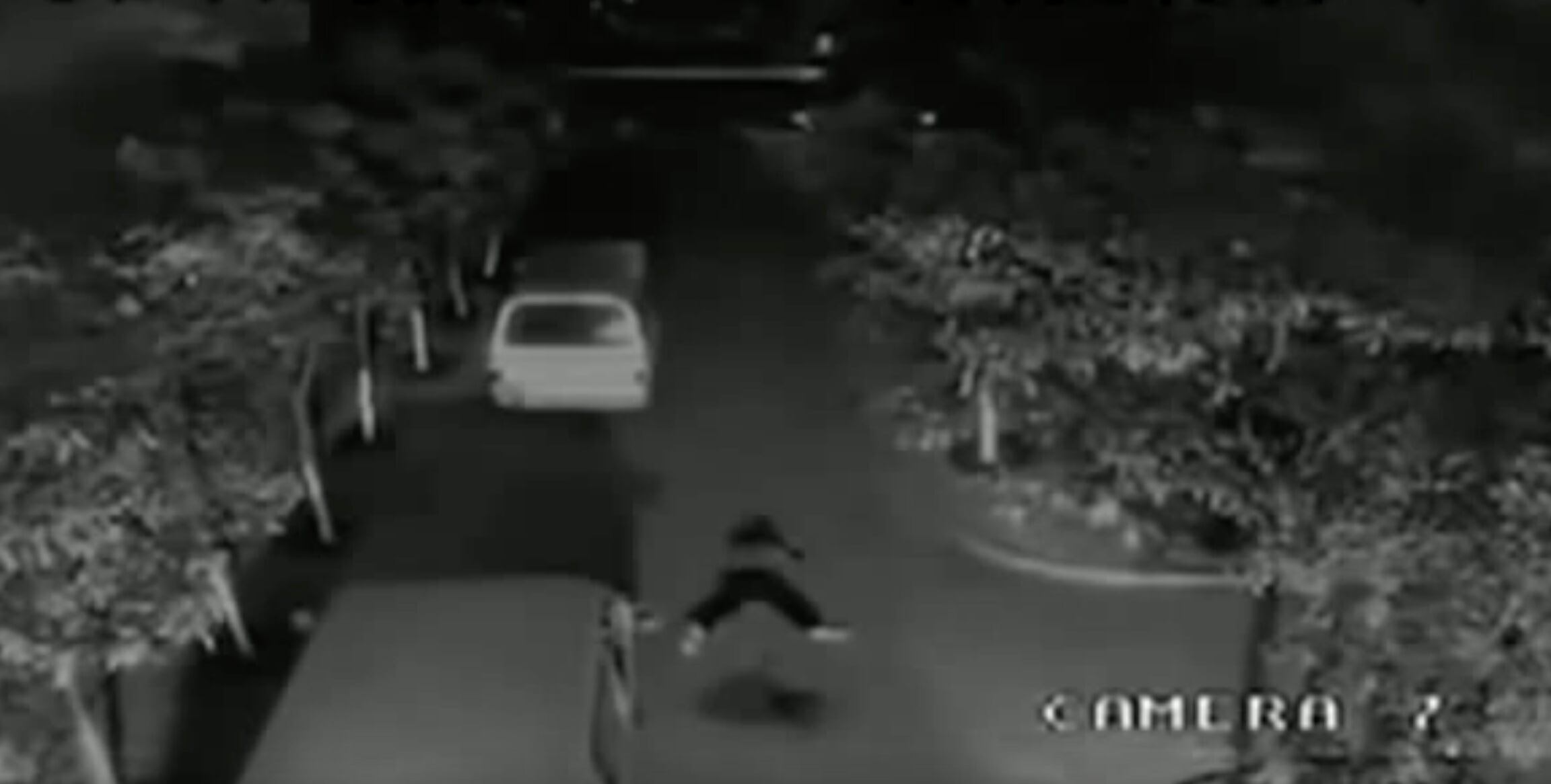 En el video de una cámara de seguridad se ve cómo es impactado, pero luego de unos segundos logra levantarse de suelo y caminar como si nada hubiera pasado.