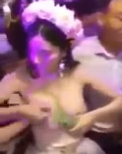 Un video en redes sociales muestra el momento en el que una mujer recién casada deja que le toquen los senos a cambio de dinero.