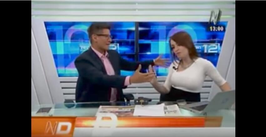 La conductora del noticiero presentaba el bloque de deportes y vivió un «incómodo» momento. El periodista que la acompañaba, Erick Osores de la cadena Canal N y América TV, pasó un bochornoso momento en en vivo.