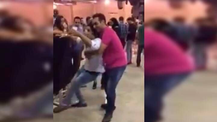 Con la finalidad de evitar que su amigo siga haciendo el ridículo, el hombre lo agarró desde atrás y lo levantó.