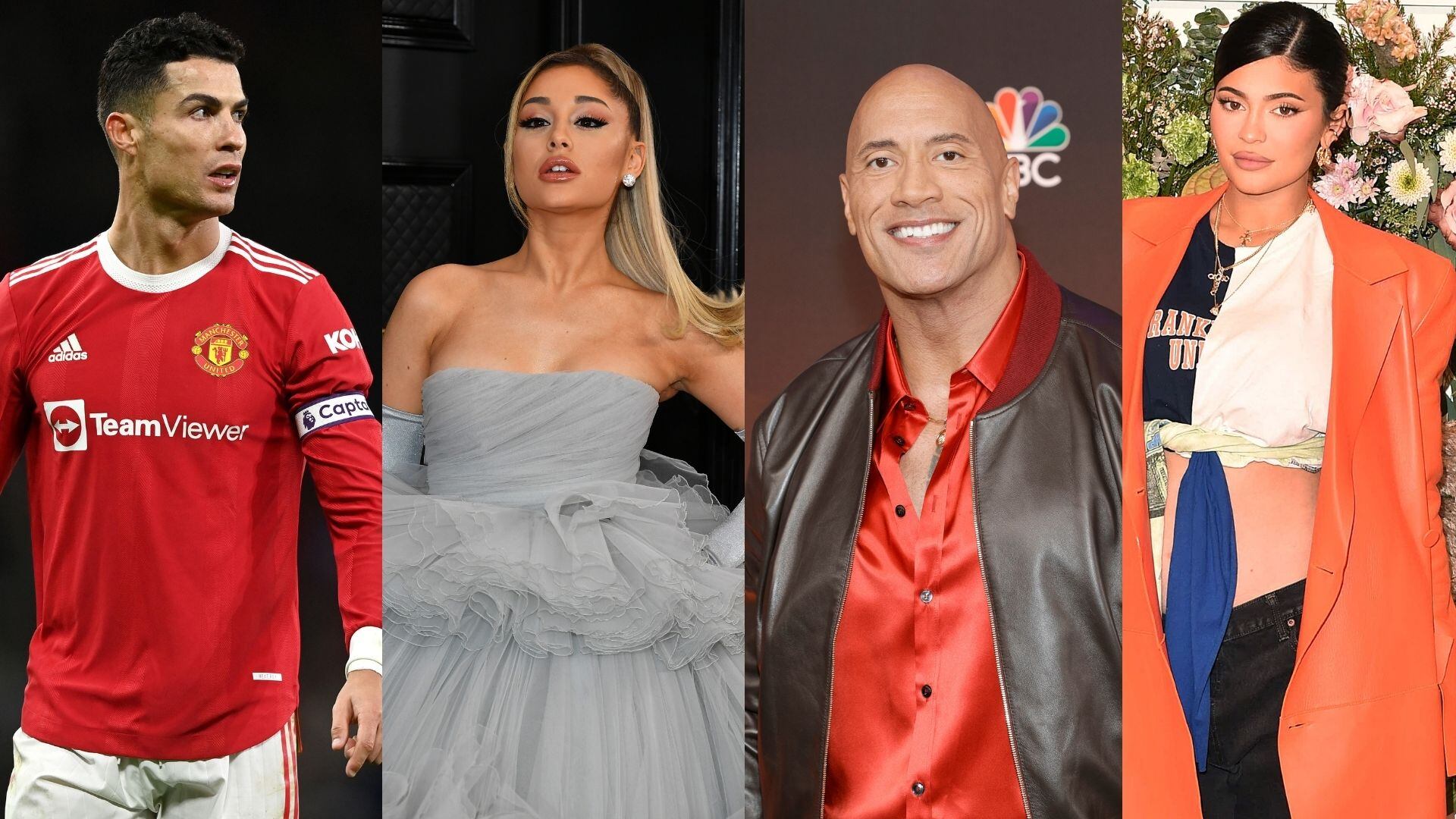 Cristiano Ronaldo, Ariana Grande, Dwayne 'La Roca' Johnson y Kylie Jenner. Las 10 celebridades mejor pagadas por hacer una publicación en Instagram. / Foto: Getty Images