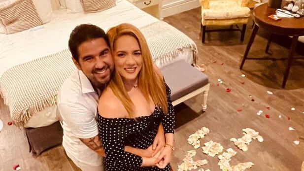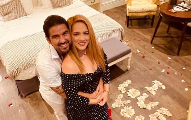 Al final del camino de pétalos se puede ver un corazón y un texto sobre el piso que dice I Love You. Pazmiño dejó ver la bella habitación y luego compartió unas fotos con su esposo mientras dejaban ver el corazón bajo sus pies.