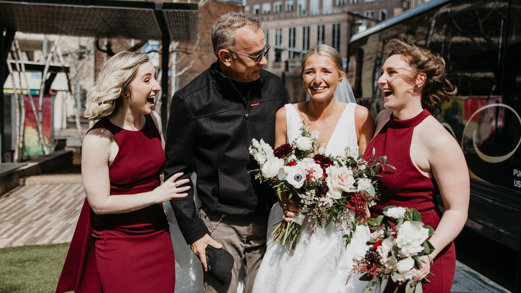 Con esas palabras el famoso actor ganador de dos Oscars le dio una enorme sorpresa a una novia en Pittsburgh el día de su boda.