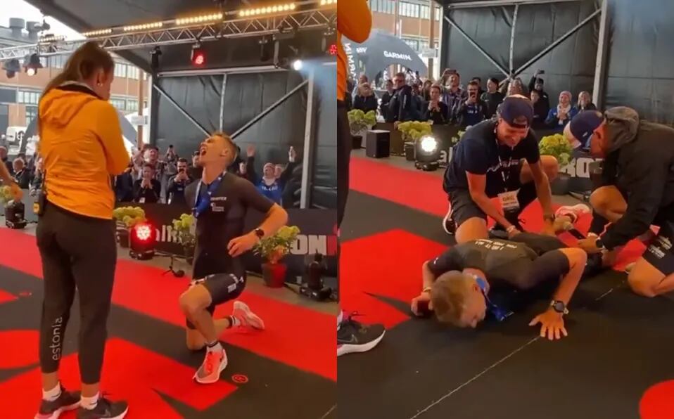 Se trata del atleta español, Cristian Moratiel, quien intentó pedirle matrimonio a su novia luego de terminar un “Ironman” en Estonia pero tuvo un calambre tan fuerte que lo llevó a gritar de dolor.
