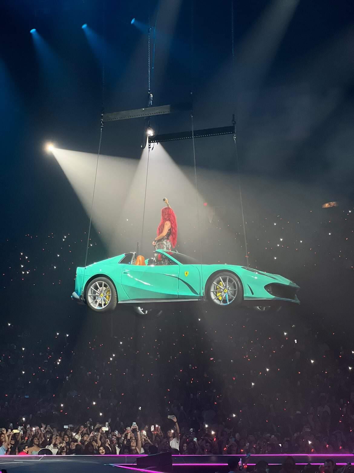 La intérprete de ´Provenza´ la sigue rompiendo en los escenarios, Karol G se encargó de ofrecer un espectáculo inolvidable a sus espectadores, quienes la vieron entrar a la tarima de una manera totalmente distinta, en un Ferrari azul, pero este no estaba sobre el escenario, sino sobrevolando encima de el.