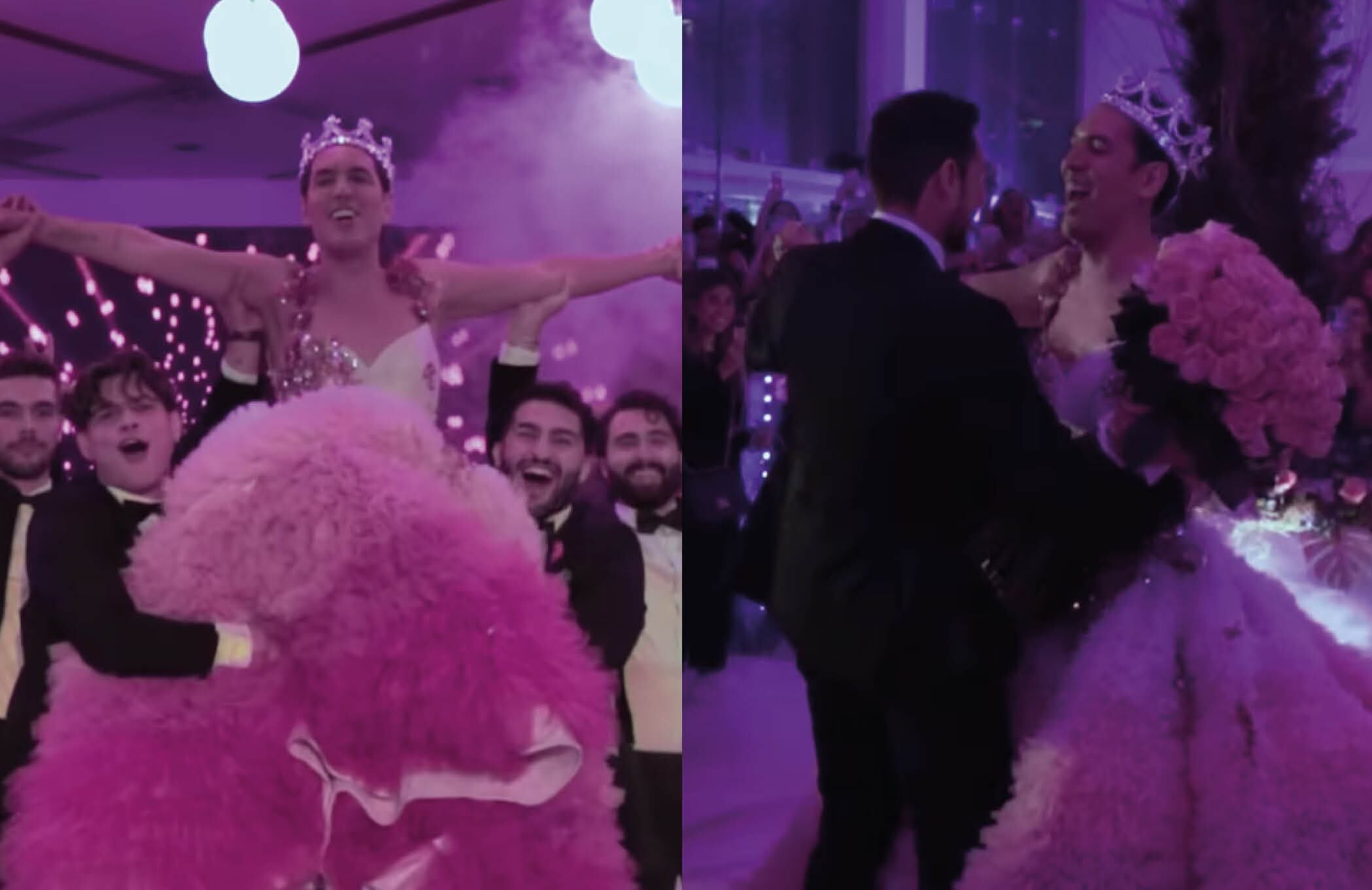 El internauta sorprendió a todos sus seguidores de su Instagram con tan voluminosa prenda. De color rosado, tenía varios adornos que hacían lucir aquel vestido como si fuera de alguna antigua realeza europea.