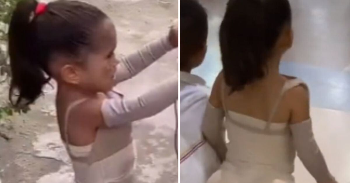 Y es que una niña colombiana de 3 años se disfrazó con unos implantes en los glúteos y pecho, llevando como un estilo de faja como la que usan las mujeres luego de operarse.