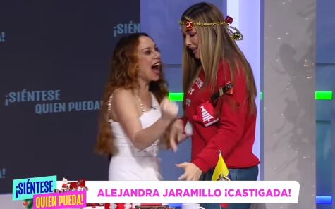 A cuatro meses de haber iniciado el reality de farándula estadounidense ´Siéntese quien pueda´, es la primera vez que Alejandra Jaramillo, deja su silla en el panel y recoge sus cosas tras ser castigada. La popular ´Caramelo´ se mantuvo invicta hasta este viernes 16 de diciembre, cuando el público, por fin voto en su contra.