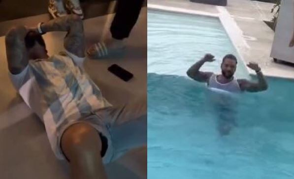 Luego, el cantante se acuesta en el piso con sus manos en su rostro y sus ojos llenos de lágrimas, para luego ponerse de pie, abrazar a quien lo ayudó a parar y ahí es cuando se quita la camiseta de la selección argentina firmada por el fallecido Diego Maradona, se quita sus tenis de lujo, desocupa sus bolsillos y sale corriendo de la casa para terminar con sus shorts de jean y una camisilla blanca en la piscina.