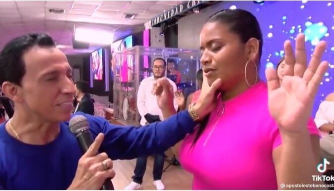 Posterior a ello, la mujer, que es con quien aparece en dicho video, le dijo “sí”. Entonces Acosta inició las oraciones por esta persona que se dio cita a la tarima desde donde el pastor predica.