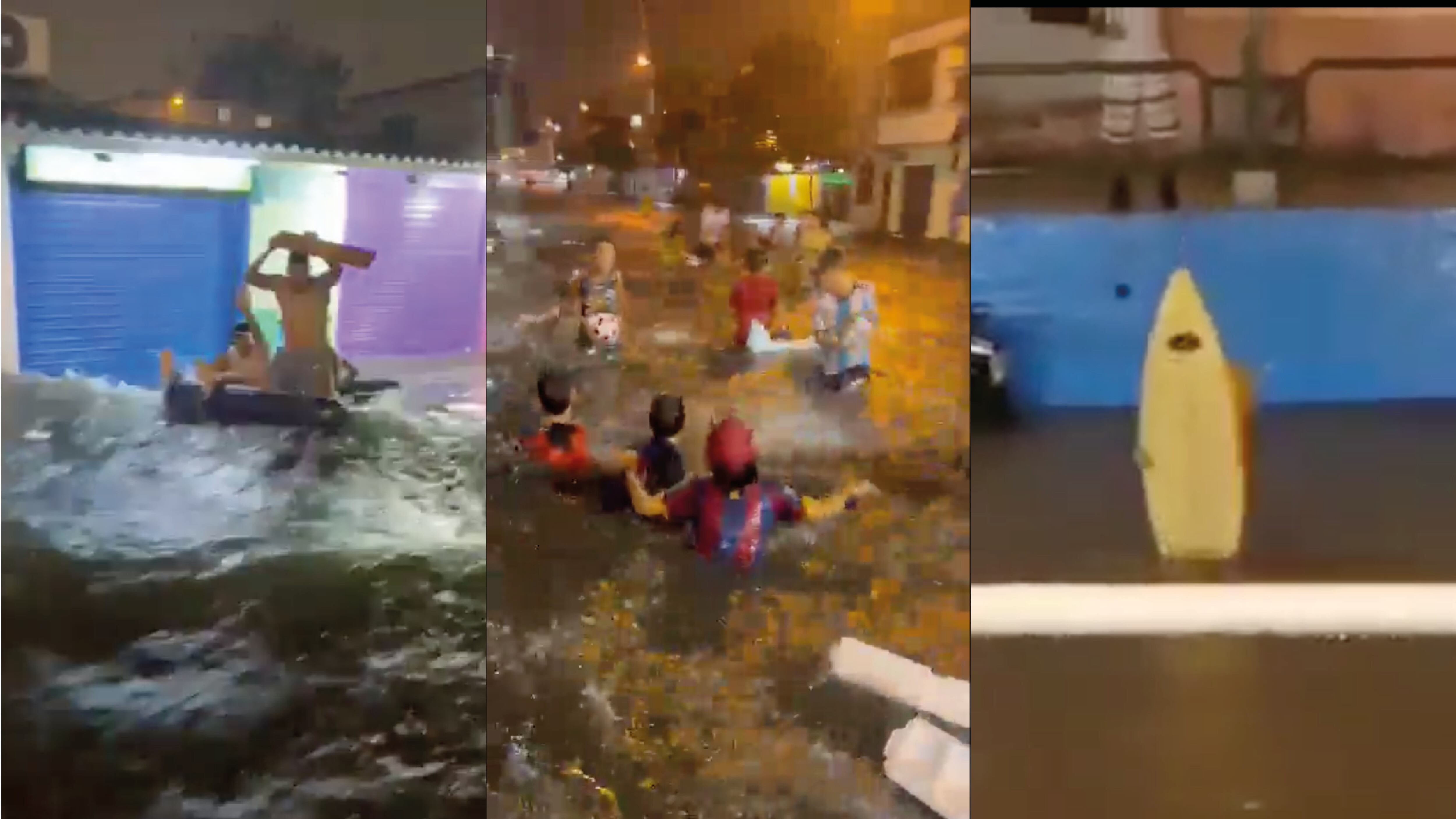 Para algunos, la fuerte lluvia que se registró en varios sectores de Guayaquil y que provocó acumulación de agua fue una verdadera diversión. Niños y adultos aprovecharon para sacar sus botes de agua, tablas de surf y más para -en medio de la noche- gozar en las calles que estaban hechas una piscina.