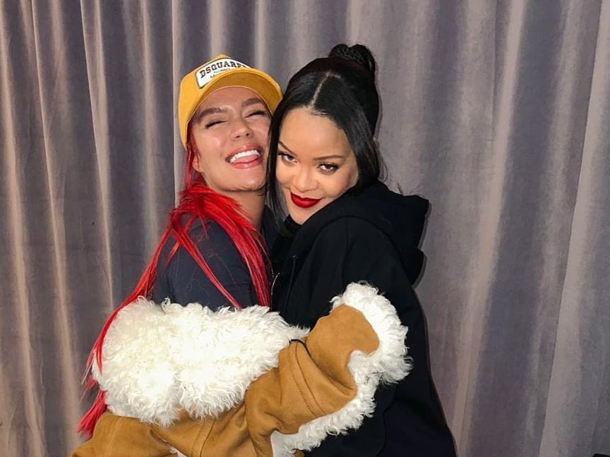 Otra de las asistentes al Superbowl que exclusivamente fue por la barbadense, fue Karol G, quien además es una gran fan, y para su fortuna, amabas pudieron conocerse después de este show.