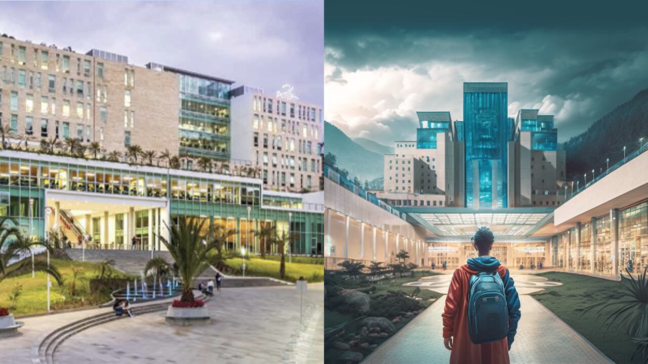 Según la IA conservará la bella infraestructura que la caracterizaba, con edificios más ampliados y las gradas eléctricas se sustituirán por portales voladores que transportará a cualquier estudiante sin necesidad de caminar.