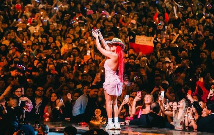 La réplica de los videos de la presentación de Karol G en Viña del Mar han sido divulgados en las redes sociales en pequeños extractos, ya que la presentación supera la hora y media de show.