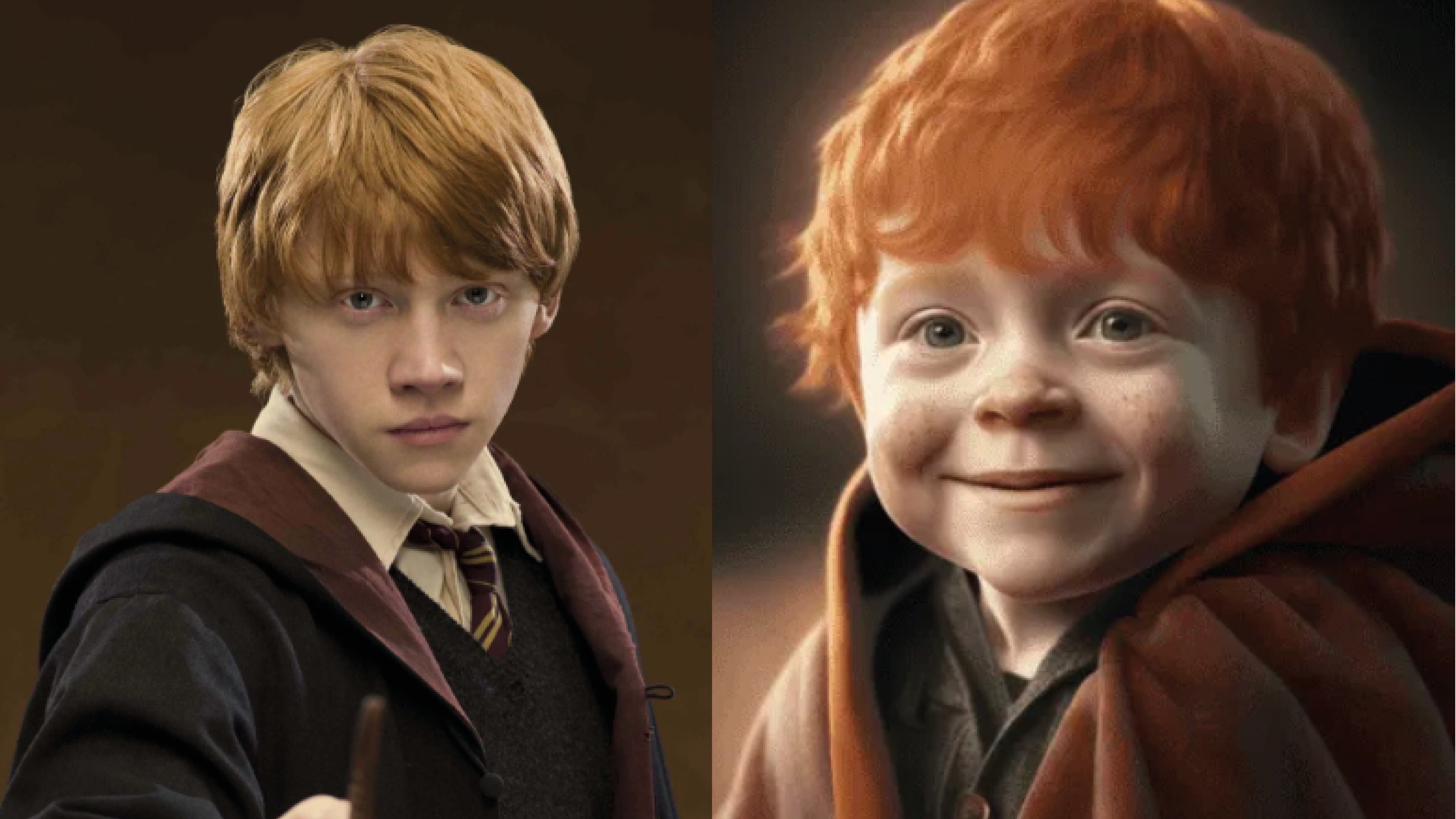 El fiel mejor amigo de Harry Potter junto a Hermione Granger, viene de una familia repleta de magos. Desde que era un bebe, según la IA mantiene su sonrisa y es muy divertido como se lo caracterizaba en la saga literaria, al igual que su lindo cabello cobrizo.