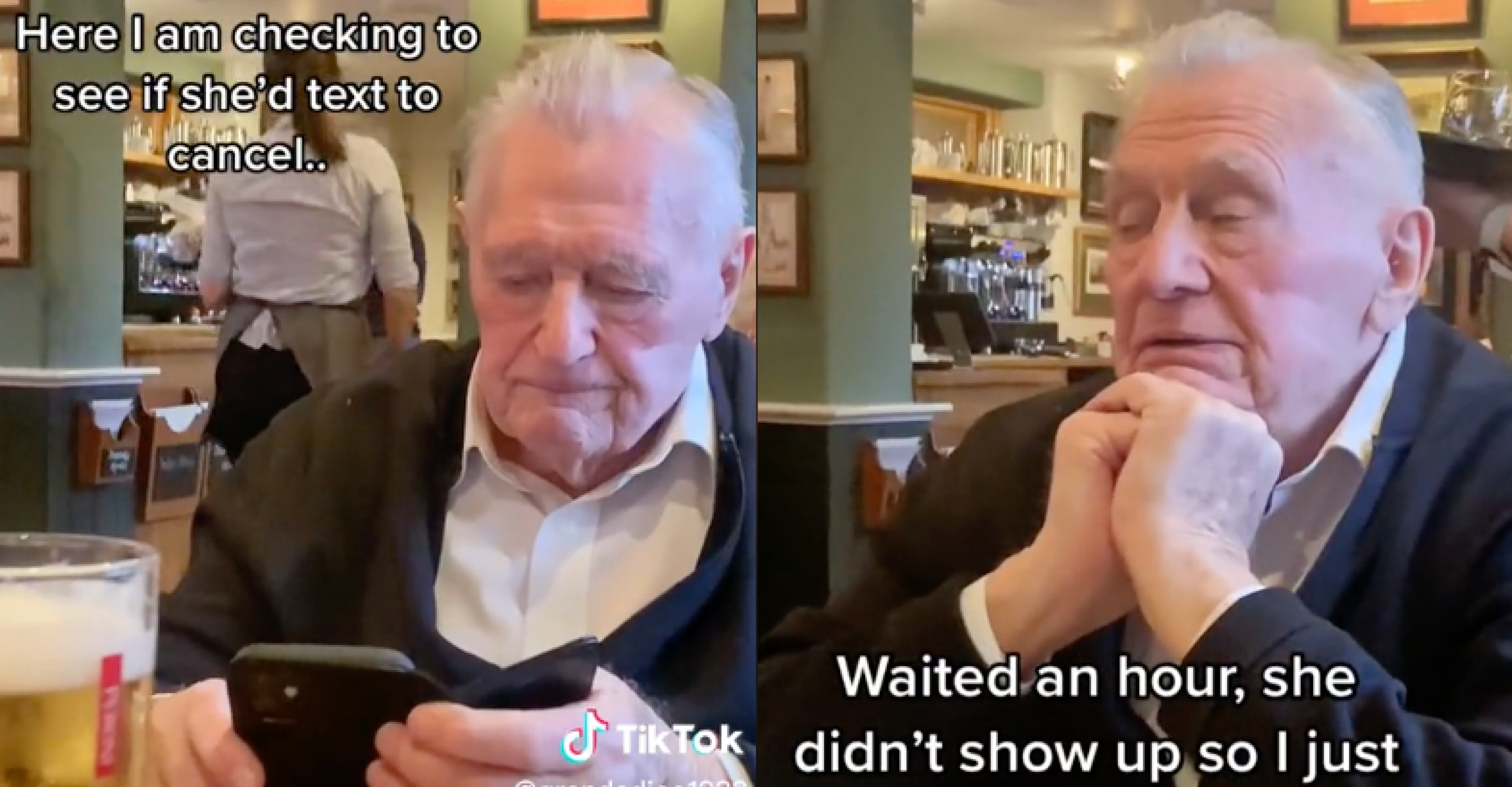 Una vez arreglado, el hombre se dirigió hacia el restaurante donde esperó por una hora y con bastante frecuencia revisaba el celular. En vista que lo dejaron vestido y alborotado, Joe optó por comer solo en el restaurante al darse cuenta que nunca llegaría.