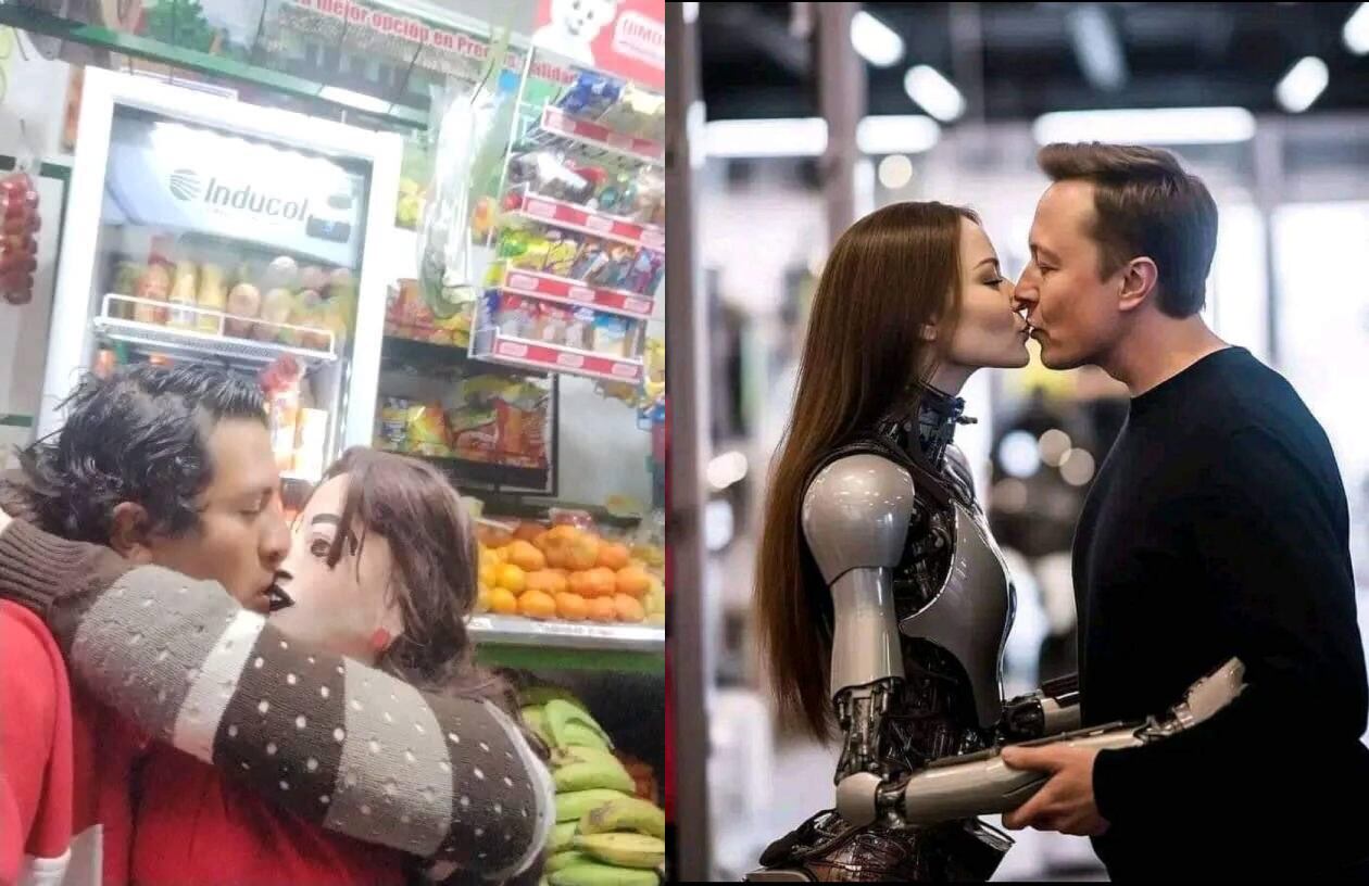 Elon Musk besó a un robot y le dicen la versión premium del loco de la muñeca de trapo