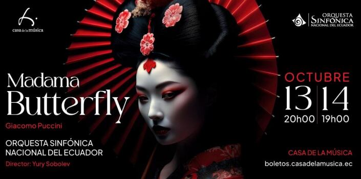 La Casa de la Música y la Orquesta Sinfónica Nacional del Ecuador presentan Madama Butterfly, una de las óperas más aclamadas de la historia de la música y obra maestra del gran compositor italiano Giacomo Puccini.