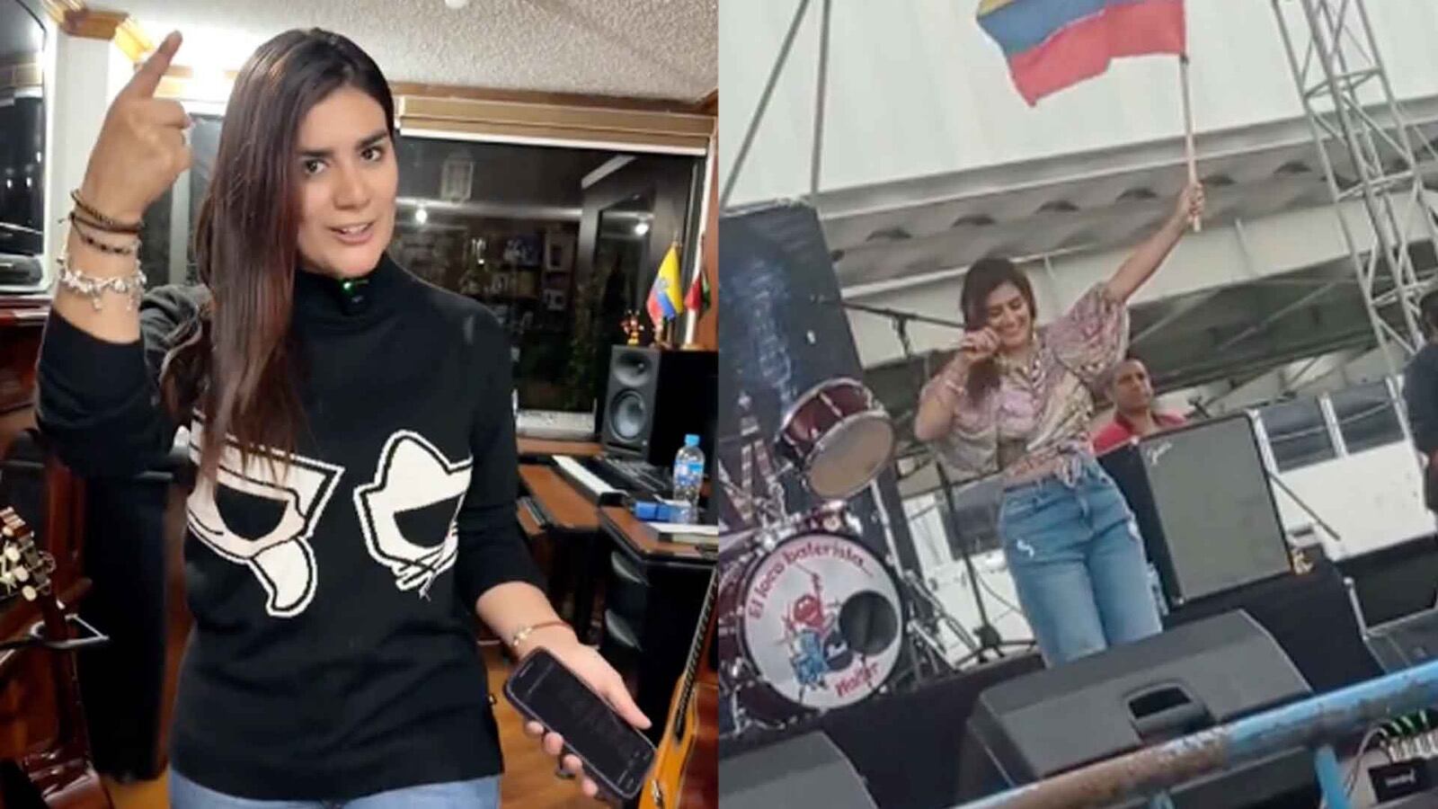 En ese show, a pesar de contar con instrumentos musicales, solo la pista es lo que le ayuda en su presentación a la joven quiteña.