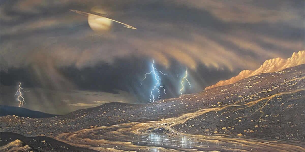 - Metano en Titán: Titán es la luna más grande de Saturno. Tiene una atmósfera espesa y rica en metano. La lluvia en Titán es, por lo tanto, de metano, que es un líquido a la temperatura y presión de la superficie de Titán.