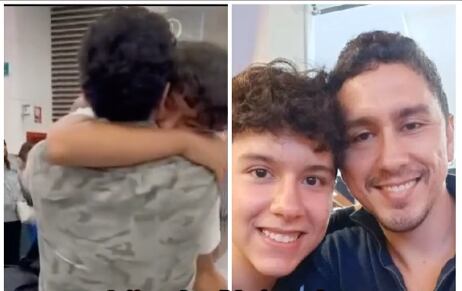 Su padre, muy emocionado, se impresiona al ver cuánto ha crecido su hijo y le topa el cabello también sorprendido de que ya es todo un adolescente. La abuela paterna fue la que viajó a Estados Unidos para traer a Sebas se puede verla en el video llegando al aeropuerto.