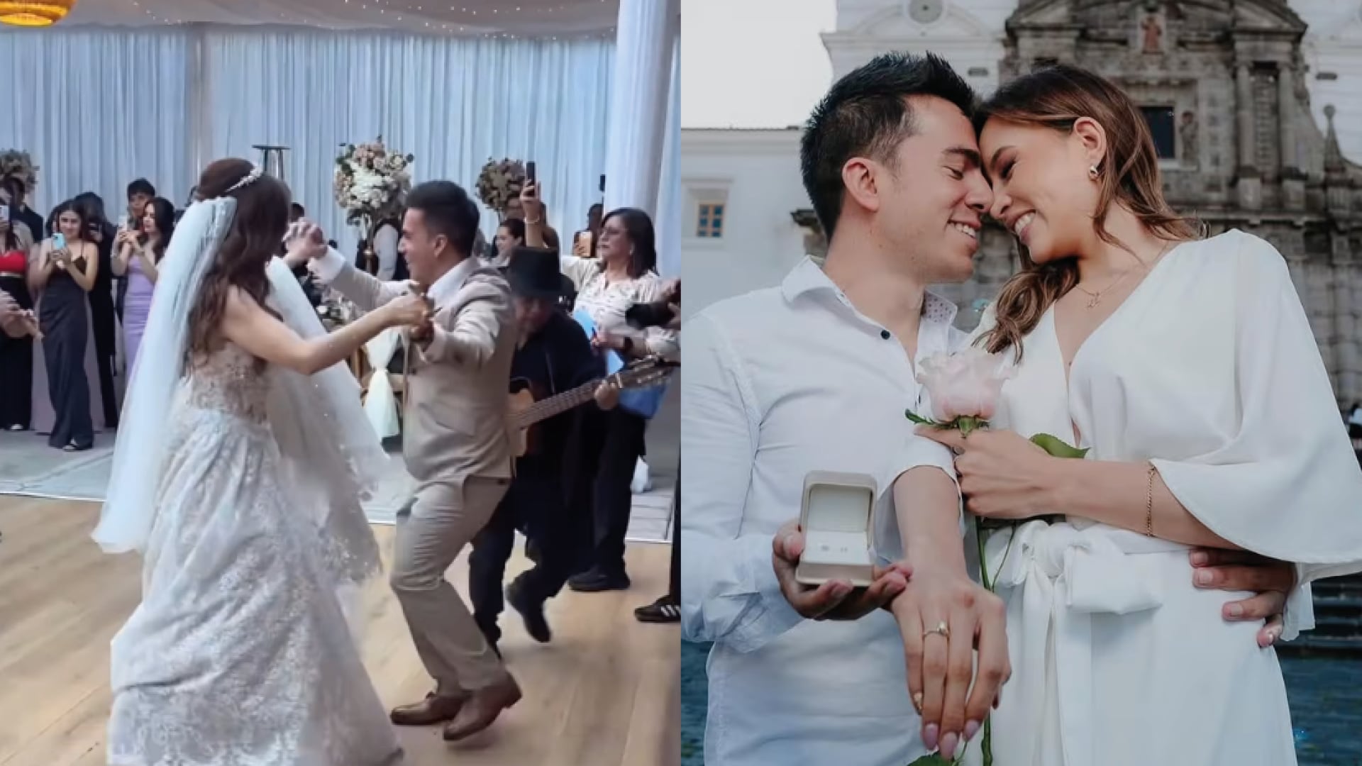 A través del video compartido en la cuenta oficial de Instagram de ‘El Champ’, donde acumula 340 mil seguidores, se observó cómo fue el emotivo momento que tuvo flores, músicos en vivo y que ocurrió el 28 de junio del 2024 en las afueras de la Iglesia de San Francisco de Quito. Ambos vistieron de blanco.