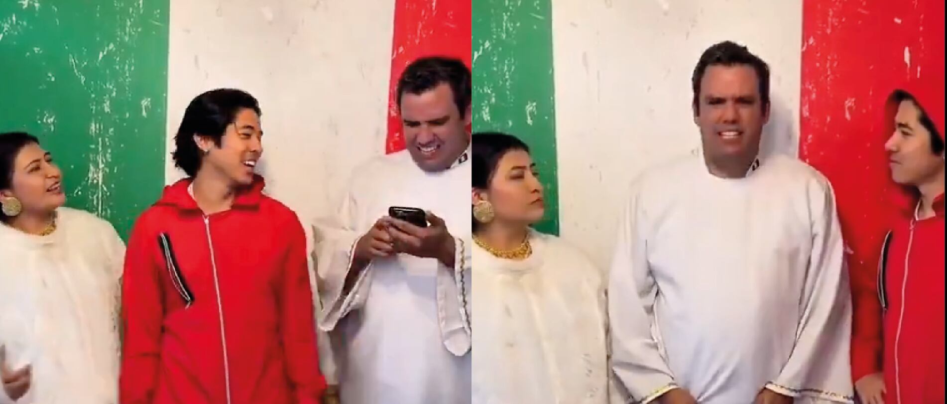 Por otro lado y continuando con el video de la polémica, mientras un efecto de llamas está sobre Pacheco, él le indica a Sergio que el “el infierno no es tan feo como la entrevista que le hizo a Ñusta ‘La Madrina’ (...) sepárame esa paila, porque ahí se fríe el Álex. Macarena, Luciana, bájense del ascensor”.