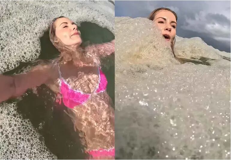 Hayward, quien acumula miles de seguidores en redes sociales, compartió un video en el que se la ve nadando y riendo entre la espuma. En medio de la grabación, se le escucha decir que “la espuma está salada”, mientras parte del líquido entra en su boca.