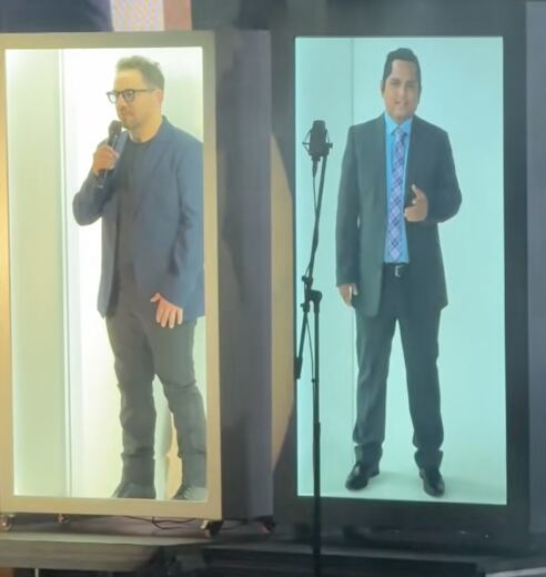 Juan Fernando Velasco no solo presentó su música, sino que también dio vida nuevamente a una de las figuras más importantes de la música ecuatoriana gracias a la inteligencia artificial y la tecnología de hologramas.