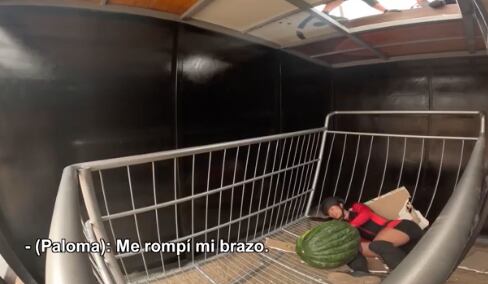 El equipo rojo competía en desventaja y comenzó a acelerar el ritmo del desafío. En ese contexto, Fiuza —conocida como “Pops”— ya sobre una gran estructura del juego, tomó uno de los zapallos y pisó una ventana falsa, lo que provocó una caída desde aproximadamente dos metros de altura. Tras el impacto, la artista gritó: “Se rompió mi brazo”.