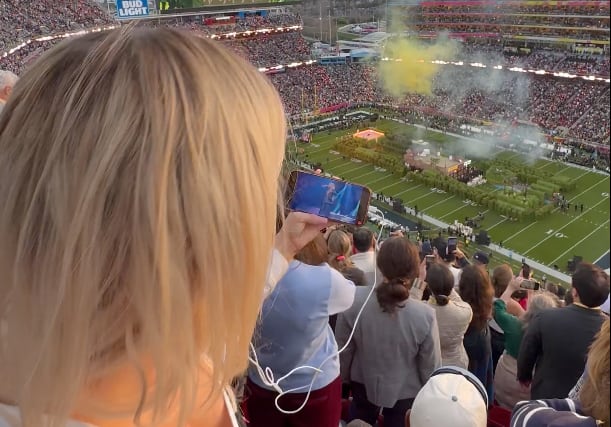 Vance, quien cuenta con más de 538.000 seguidores en Instagram, compartió un clip en el que aparece bailando en las gradas del estadio mientras usa audífonos con cable y observa en su teléfono un programa alternativo de Turning Point USA, organización conservadora que organizó un evento paralelo al show oficial.